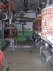 Dans des locaux annexes se trouvent des cuves de 36m³ d’eau pour refroidir les moteurs et d’autres de 24m³ de gasoil pour le fonctionnement.